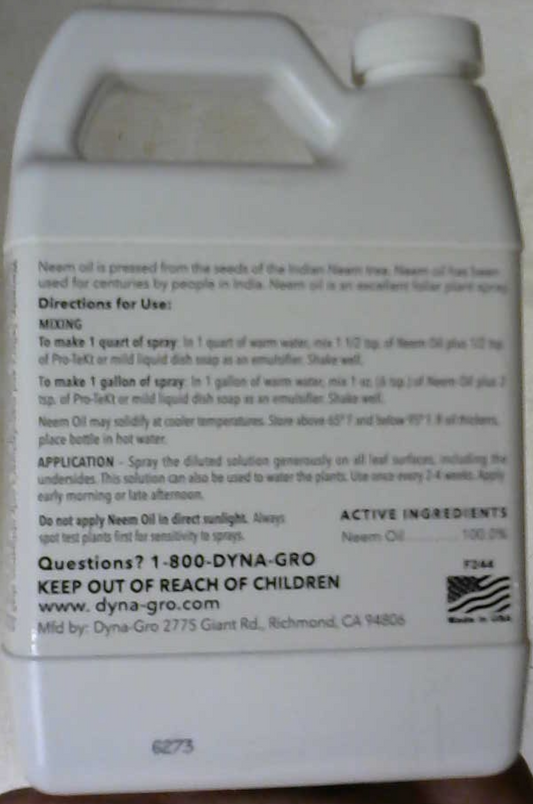 1 Dyna Pure Neem Oil 32oz ounce 1 Quart - dyna gro fertilizer plant nutrient