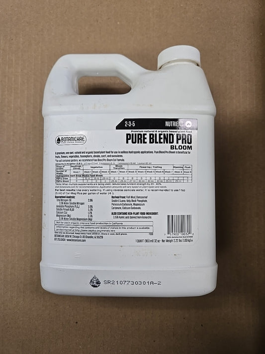 Botanicare Pure Blend Pro Bloom 1 Quart pureblend pbp hydroponic