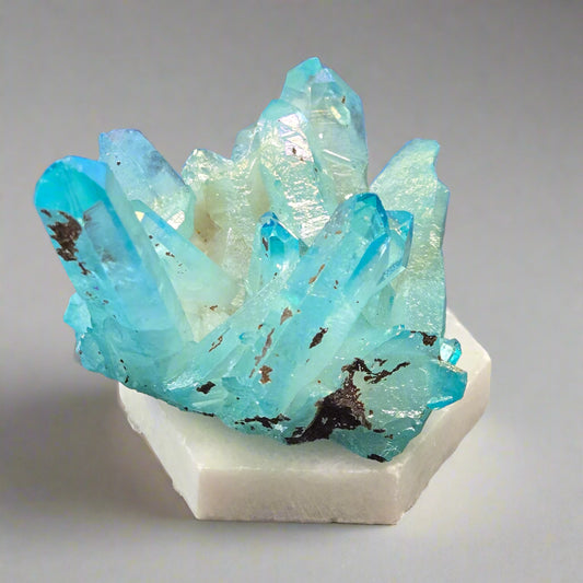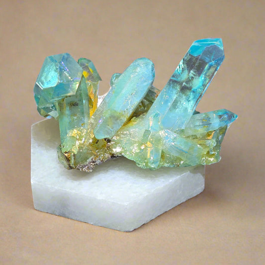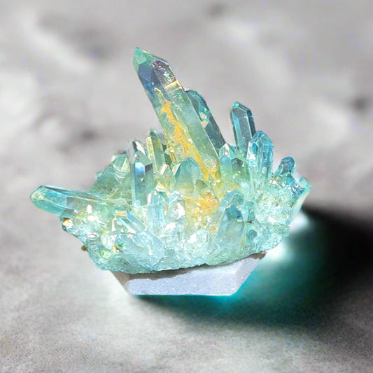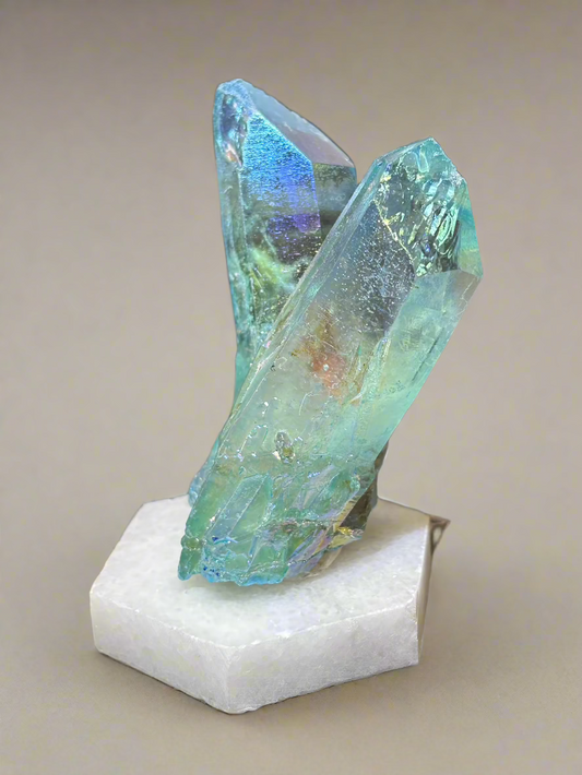 Aura Quartz Cluster on Marble Base, 85.4gr, Titanium Coating