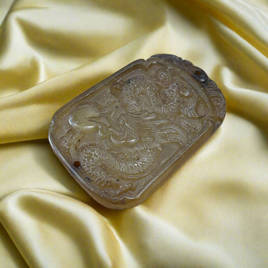 Light Brown Jade Dragon Charm, 29.75gr, 53x38x8mm