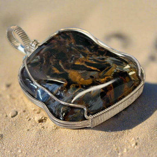 Wire Wrapped Pietersite Pendant, Sterling Silver, 24.67gr.
