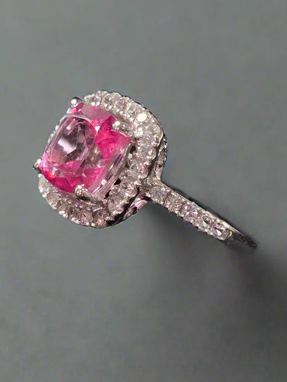 14k Estate White Gold Simulated Pink Sapphire and Diamond Ring