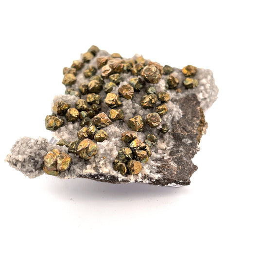 Chalcopyrite on Calcite, Madan Mine, Bulgaria, 9x6x8cm