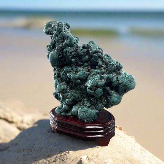 Polished Chinese Turquoise Specimen on Wood Base, 9.5" Tall, 4.57 LB