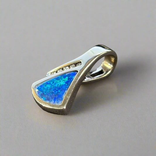 14k White Gold Boulder Opal & Diamond Pendant, Hand Cut