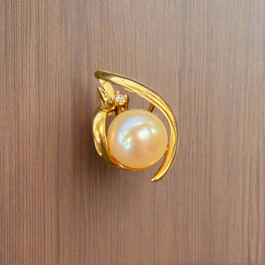 14k Yellow Gold 10mm Salt Water Pearl & Diamond Pendant