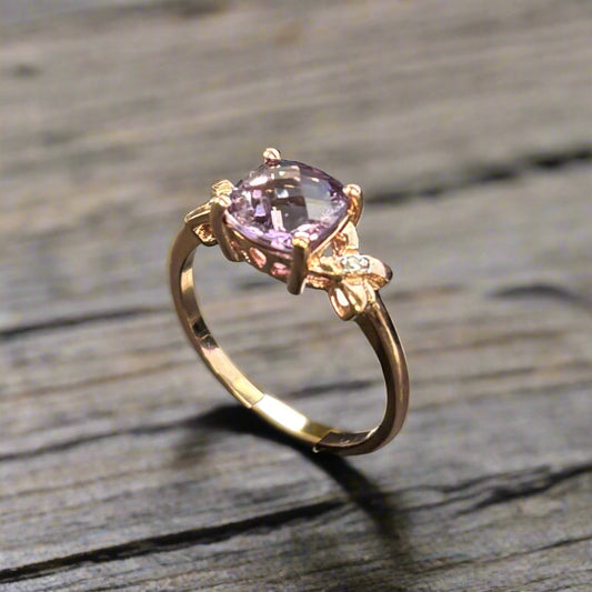 14k Rose Gold Amethyst Ring 6x4mm with Diamond Accents