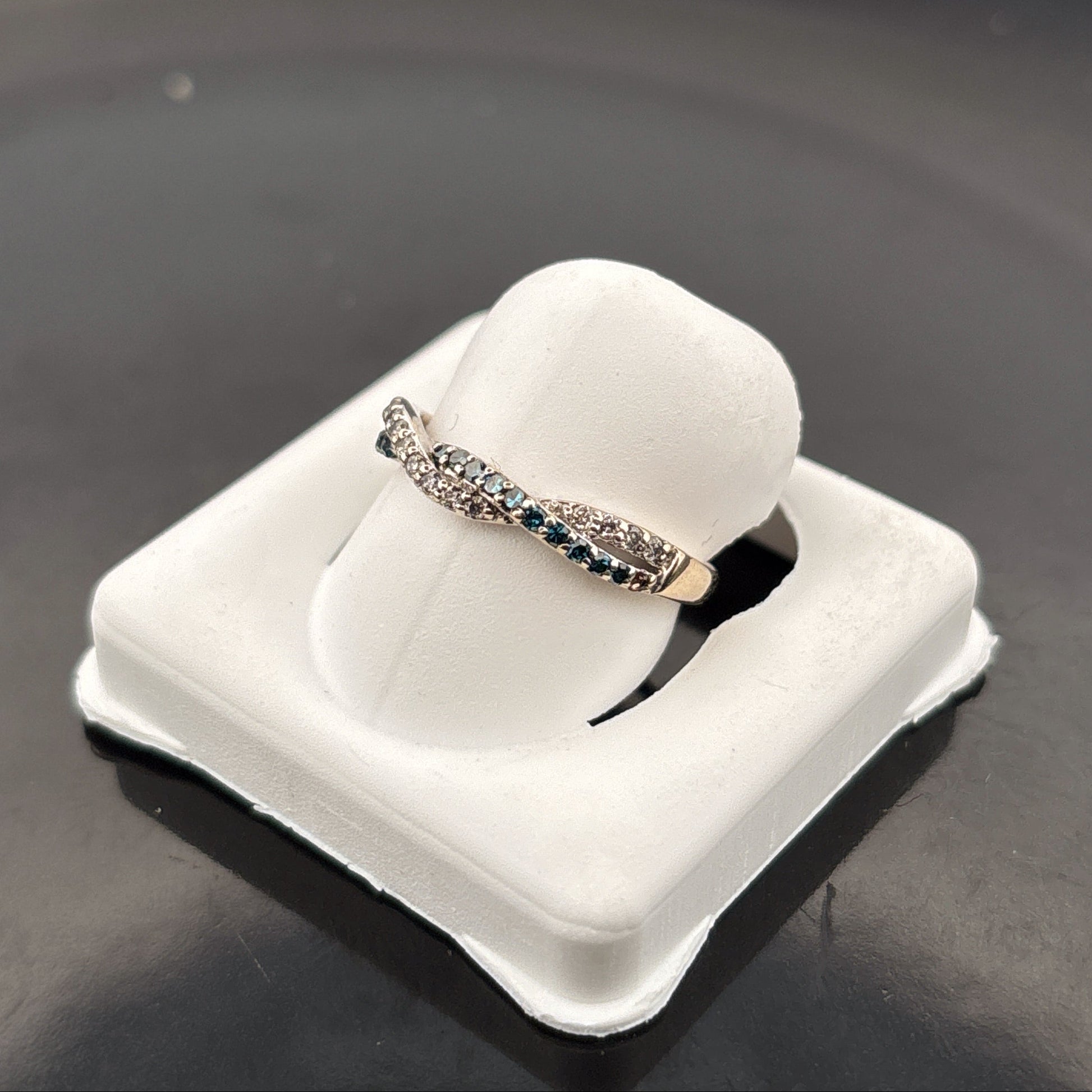 14k White & Blue Diamond Band, 1/4cttw, H/Vivid Blue, I1, 2gr