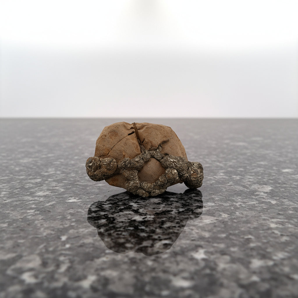 Exceptional pyrite specimen featuring brilliant brassy cubic crystals perched on oxidized limonite clay matrix. This 248-gram piece from the renowned Supat Mine in Mansehra, Pakistan showcases the striking contrast between metallic pyrite and earthy ochre-toned host rock. The well-defined crystals display characteristic geometric forms and lustrous surfaces, making it an outstanding addition to any mineral collection. Compact dimensions (9x5x4cm) provide excellent display presence without requiring extensive shelf space. A genuine example of Pakistan's world-class pyrite deposits, prized by collectors for both aesthetic appeal and geological significance.