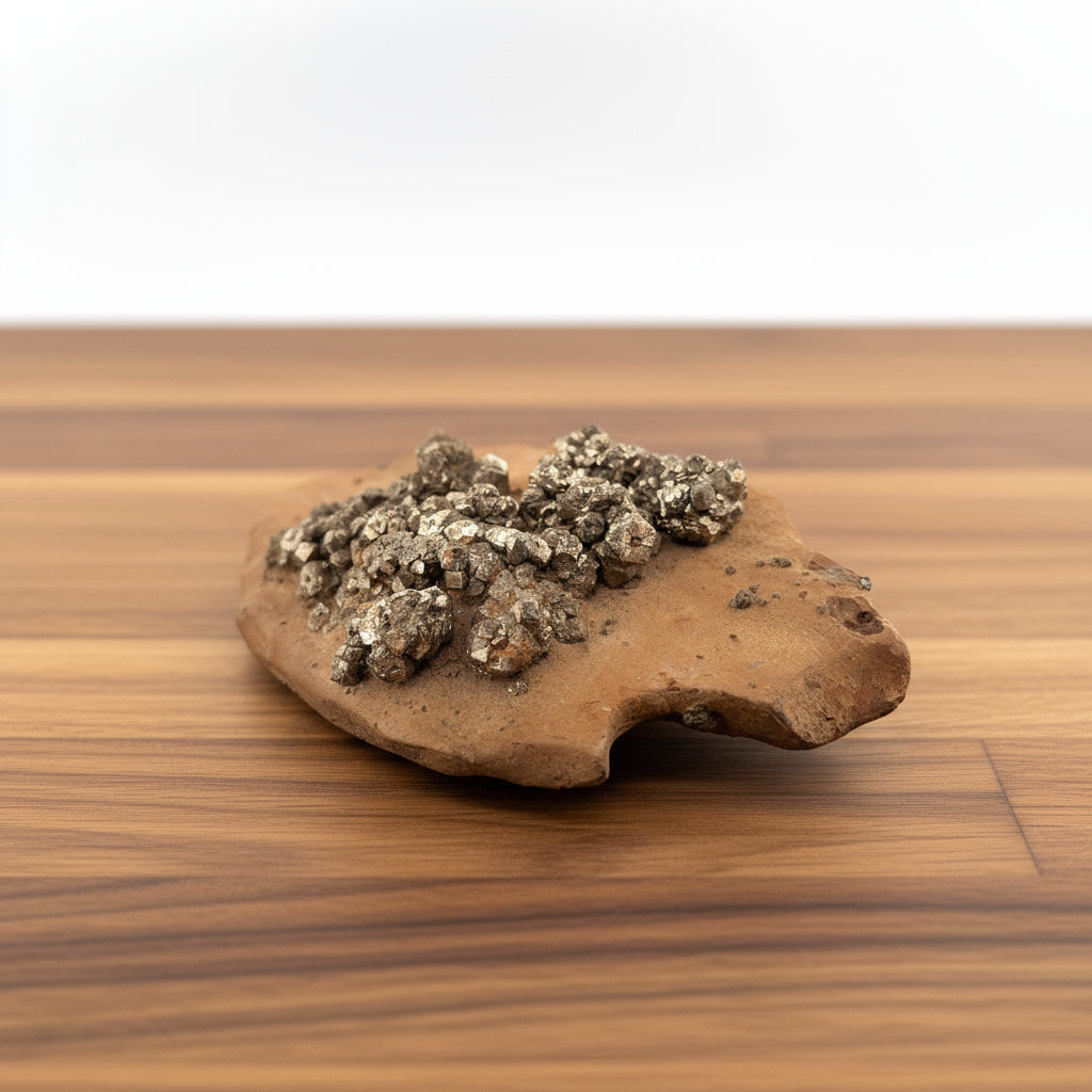 Discover a truly exceptional specimen with this rare Pyrite resting elegantly on limonite clay, sourced from the Supat Mine in Mansehra, Pakistan. Weighing 949 grams and measuring 27x10x6 cm, this striking mineral combines the metallic brilliance of pyrite with the earthy tones of limonite clay, offering a distinctive piece for collectors and connoisseurs alike. Its natural formation showcases geological artistry, making it a sophisticated addition to any display or collection.