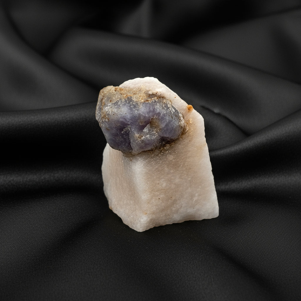 Fluorescent Hackmanite on Quartz, 71.15gr, 30x32x46mm