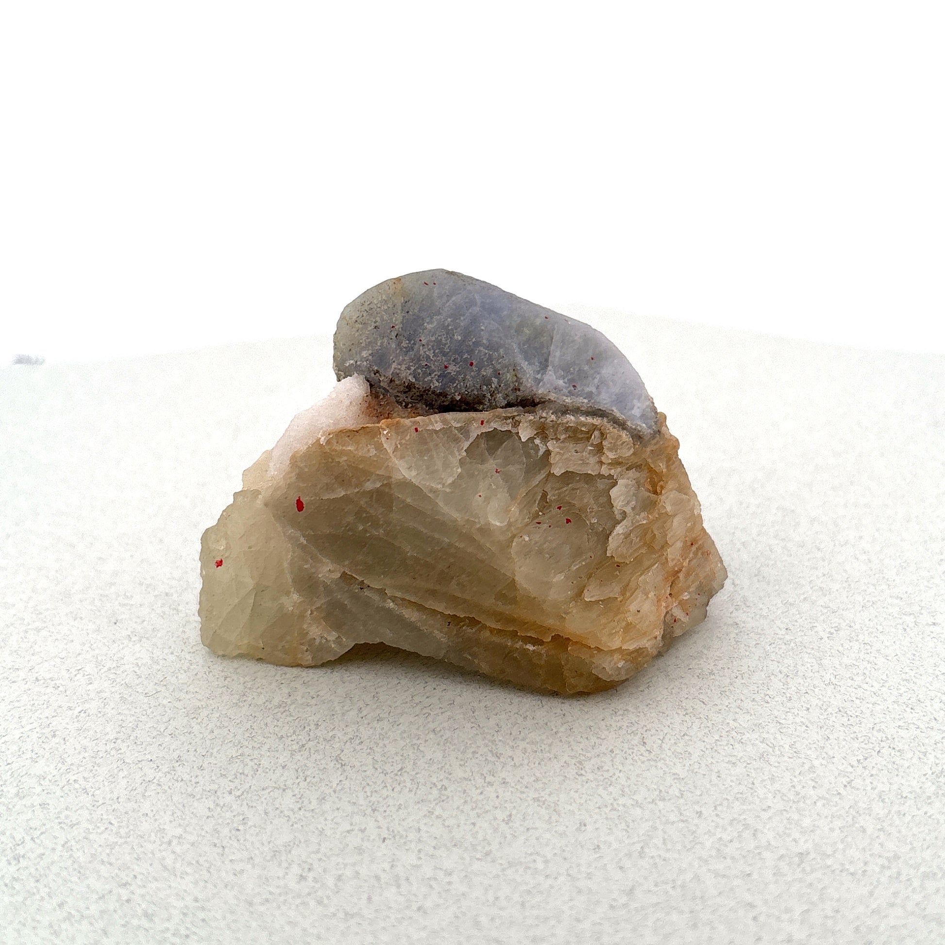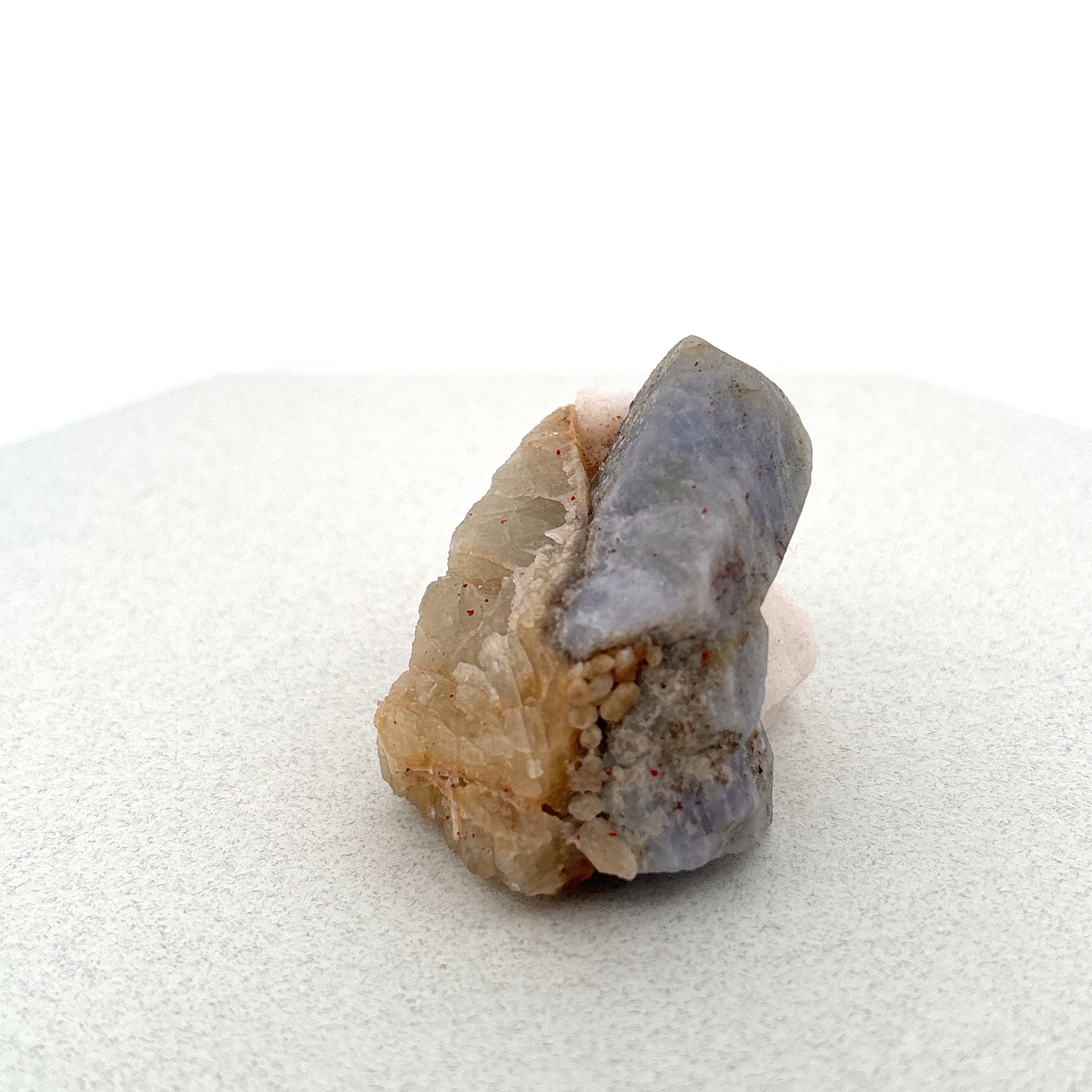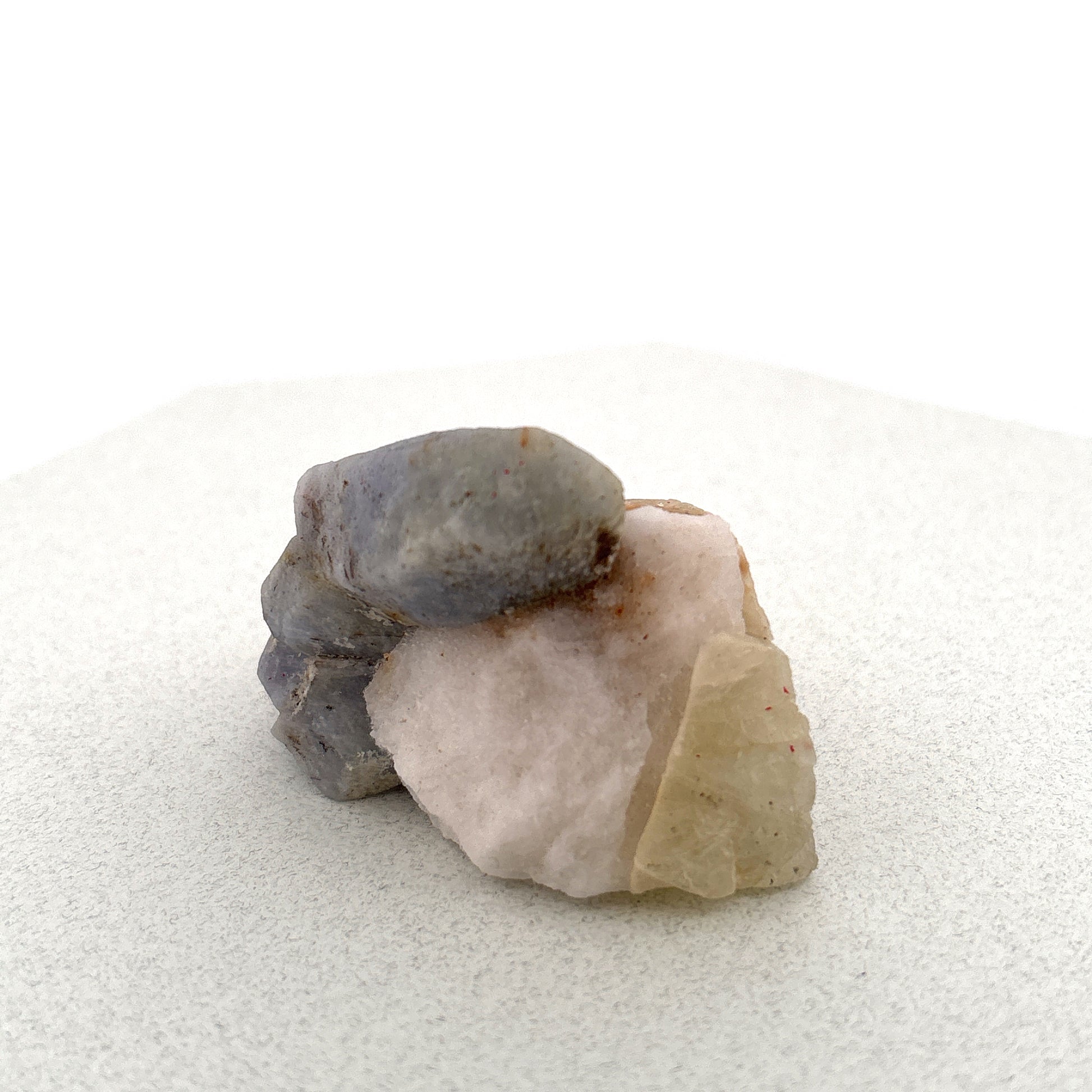 Fluorescent Hackmanite & Calcite on Quartz, Pakistan, 85.13gr