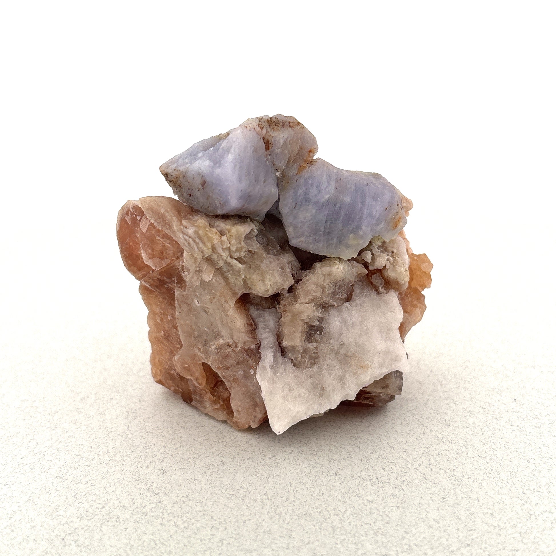 Fluorescent Hackmanite & Calcite on Quartz, Pakistan, 120.42gr