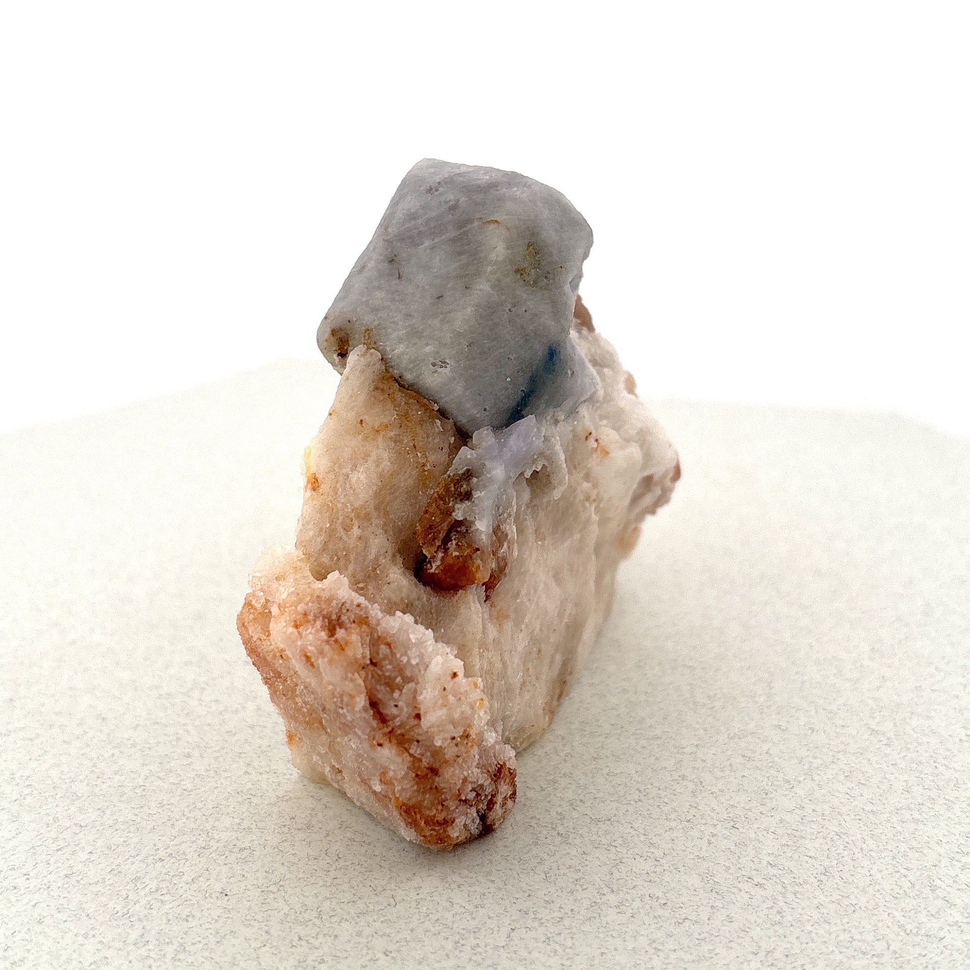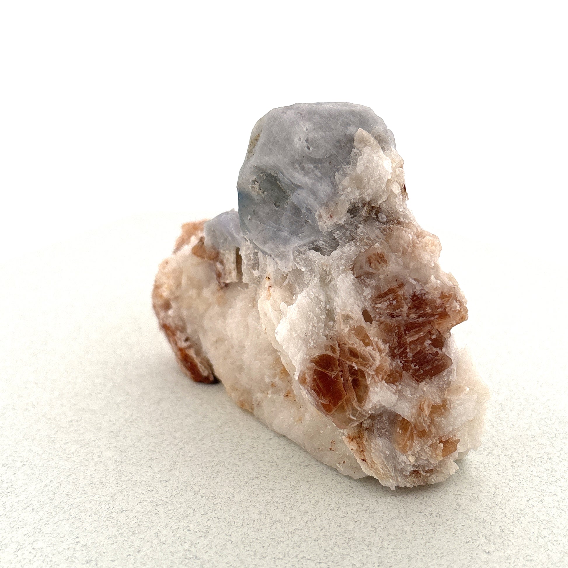 This remarkable 159.06-gram specimen features fluorescent hackmanite and calcite elegantly perched on a quartz matrix, sourced from Pakistan. Known for its rare tenebrescent properties, hackmanite in this piece exhibits vibrant fluorescence under UV light, offering both scientific interest and aesthetic appeal. Coupled with the contrasting texture and clarity of quartz and calcite, this mineral combination is ideal for collectors and connoisseurs seeking a distinctive and captivating addition to their collection.