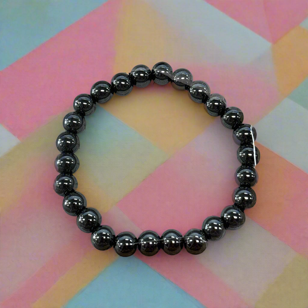 8mm Round Natural Hematite Bracelet - With Elastic Inner Band
