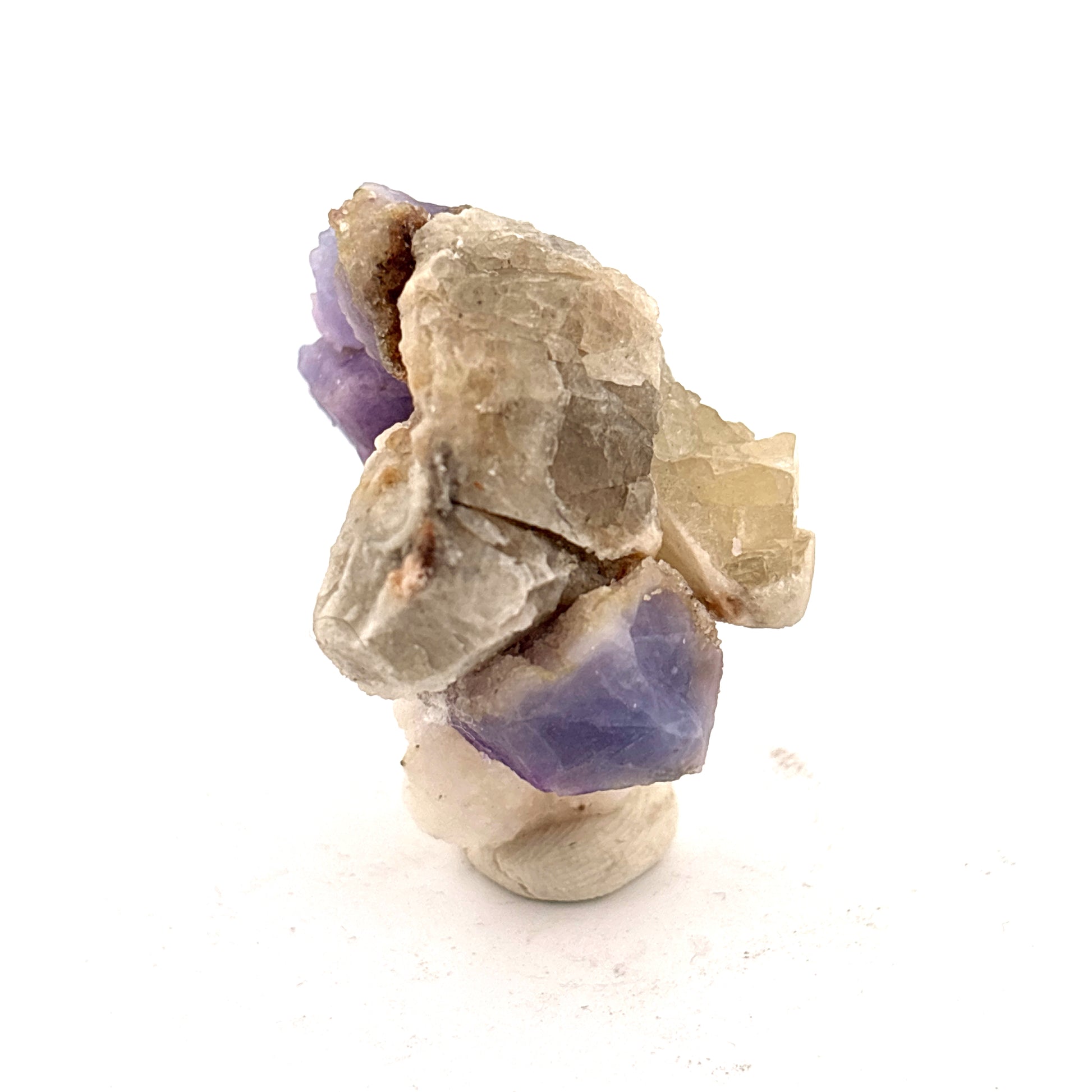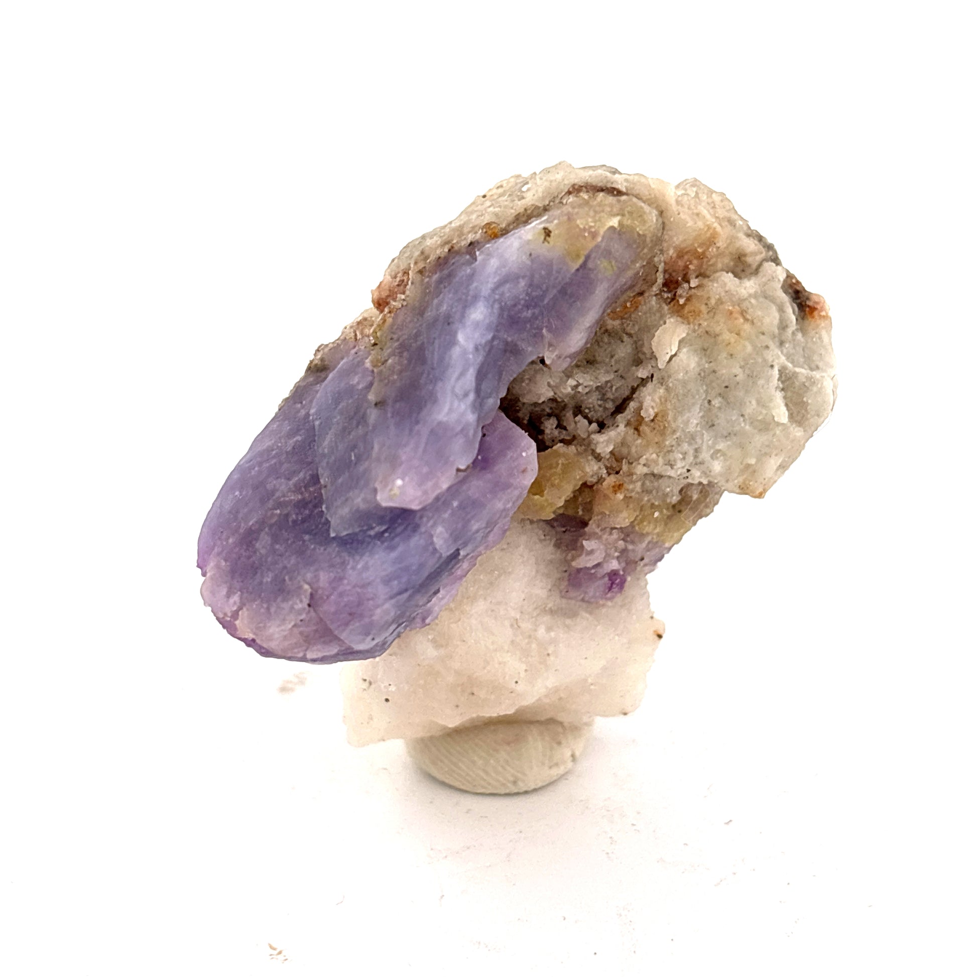 Discover the unique Fluorescent Hackmanite & Calcite on Quartz from Pakistan, weighing 38.95 grams. This rare specimen exhibits notable color changes under different lighting conditions and darkens upon UV exposure, revealing its distinctive fluorescent properties. Ideal for collectors and enthusiasts, it offers an exceptional example of mineral fluorescence and photochromism, showcasing the dynamic interaction between mineral composition and light. Its dimensions of 36x43x26mm make it a compact but striking addition to any collection.