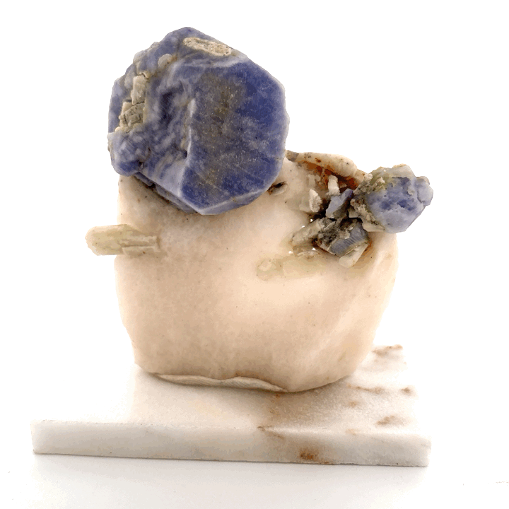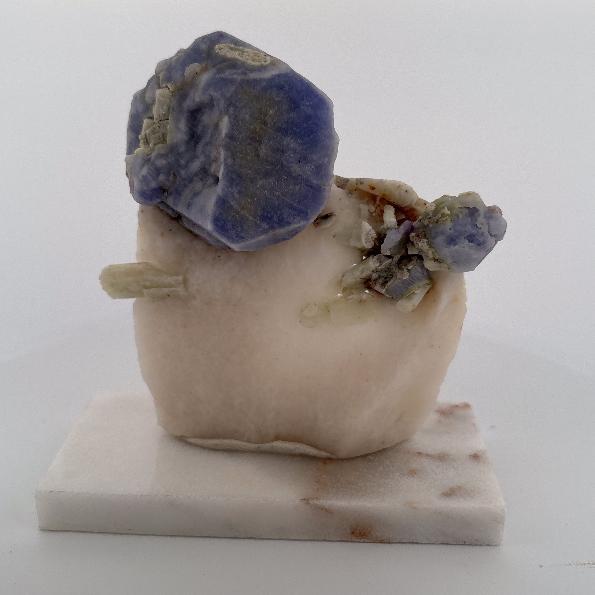 Fluorescent Hackmanite & Calcite on Quartz, Pakistan, 183.74gr