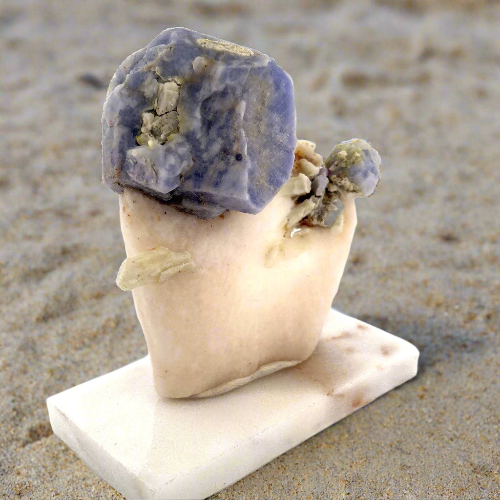 This 183.74-gram piece of fluorescent Hackmanite quartz from Pakistan offers a remarkable display of tenebrescence, glowing vividly under ultraviolet light. Measuring 8 x 3.5 x 11 cm, it is a rare mineral specimen prized by collectors and geologists alike for its unique fluorescence properties and crystal formation. Ideal for display or study, this Hackmanite quartz exemplifies exceptional natural beauty combined with scientific intrigue.